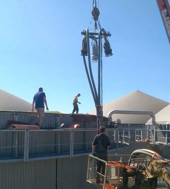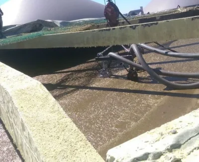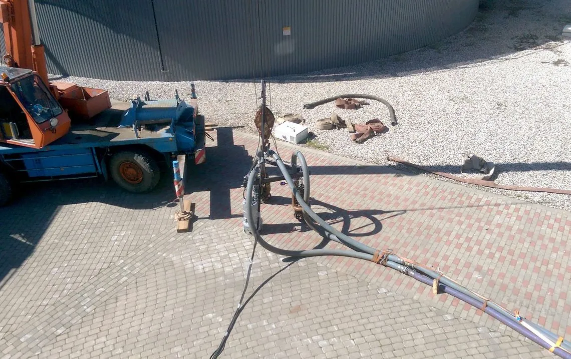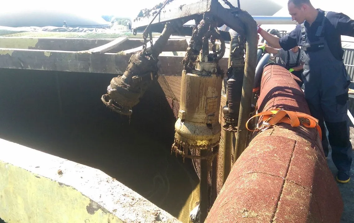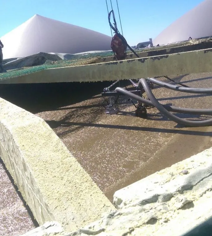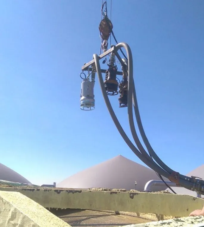 Atlikus anksčiau perpumpavimo darbus vykdžiusios įmonės darbų analizę, nustatyta pagrindinė problema – sukietėjęs ir susisluoksniavęs viršutinis biomasės sluoksnis, esantis biodujų reaktoriaus rezervuare. Pradžioje buvo pradėtas masės cirkuliacijos procesas, kol skystasis biomasės sluoksnis pralaužė kietąjį paviršinį sluoksnį ir išsiveržė į viršų. Po kelių valandų biomasės cirkuliacijos buvo išgauta vientisa, lengvai perpumpuojama masė.