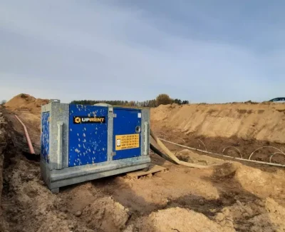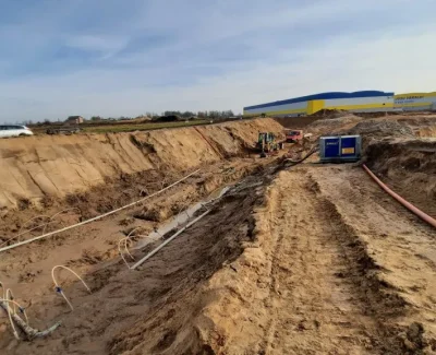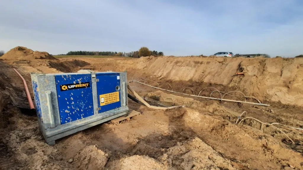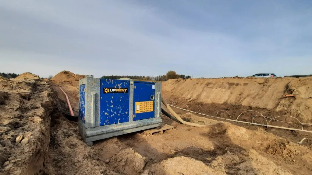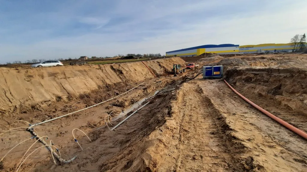 Dėl aukšto gruntinio vandens lygio ir prastų grunto sąlygų objekte, buvo priimtas sprendimas panaudoti, RENTA PUMPS gruntinio vandens šalinimo sprendinį – vertikalų drenavimą.