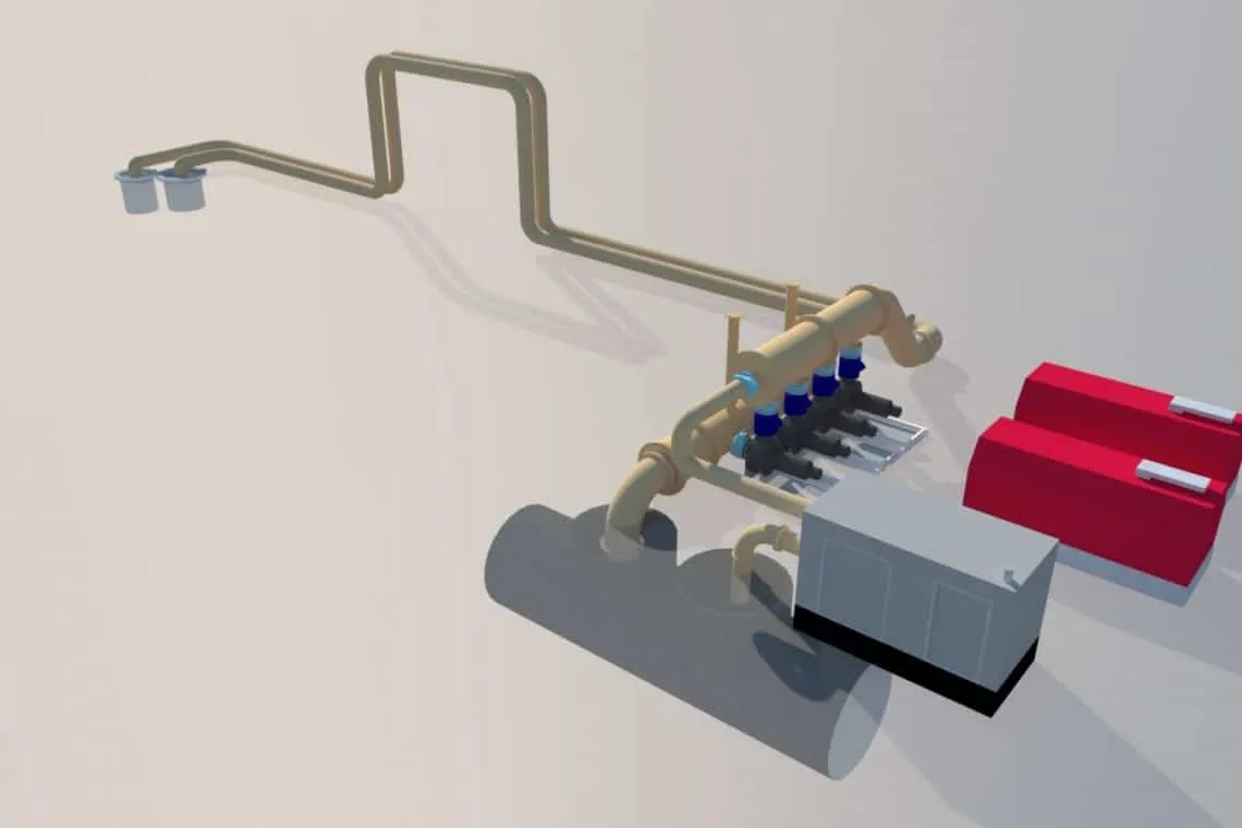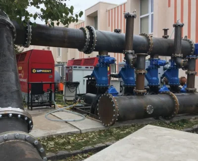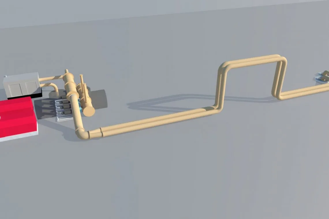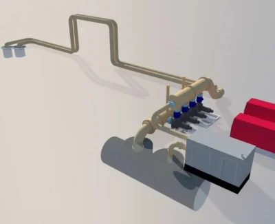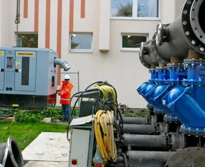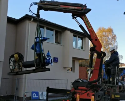 Pradinis sprendimas naudoti panardinamus siurblius buvo atmestas dėl vietos stokos. Pagal individualų projektą pagamintas įvadas ir kolektorius, tokiu būdu pajungiant panardinamus siurblius, galinčius dirbti sausu režimu ir užtikrinančius skysčio absorbavimą iki vakuuminių siurblių pajungimo į darbą. Telemetrinių sprendimų dėka perpumpavimo sistemos galingumą buvo galima reguliuoti per atstumą konkrečiu momentu, vadovaujantis pagrindiniame kolektoriuje atliktais automatiniais matavimais.