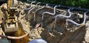 Daugiapakopė gruntinio vandens lygio žeminimo sistema naudojama, kai gruntinio vandens lygis turi būti pažemintas giliau nei 5,00–6,00 m: