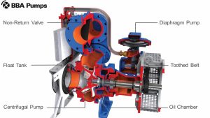 • „BBA Pumps“ gamina dviejų tipų vakuuminius siurblius: MP50 ir MP100. Skirtumas yra atitinkamai maksimali oro talpa – 50 m3/h ir 100 m3/h.