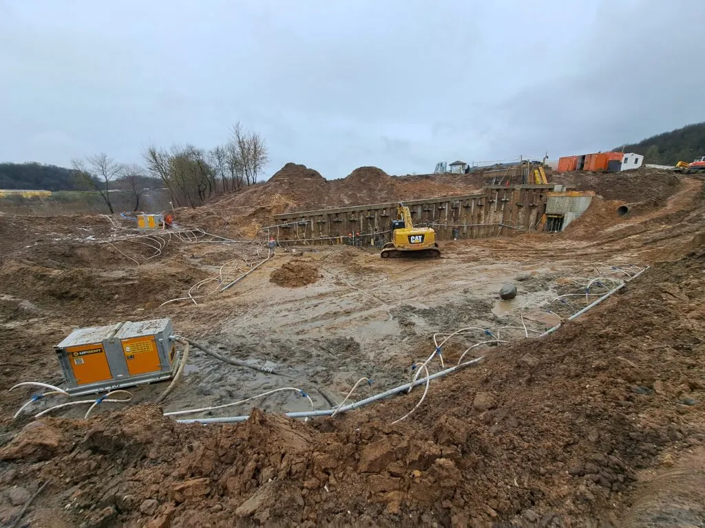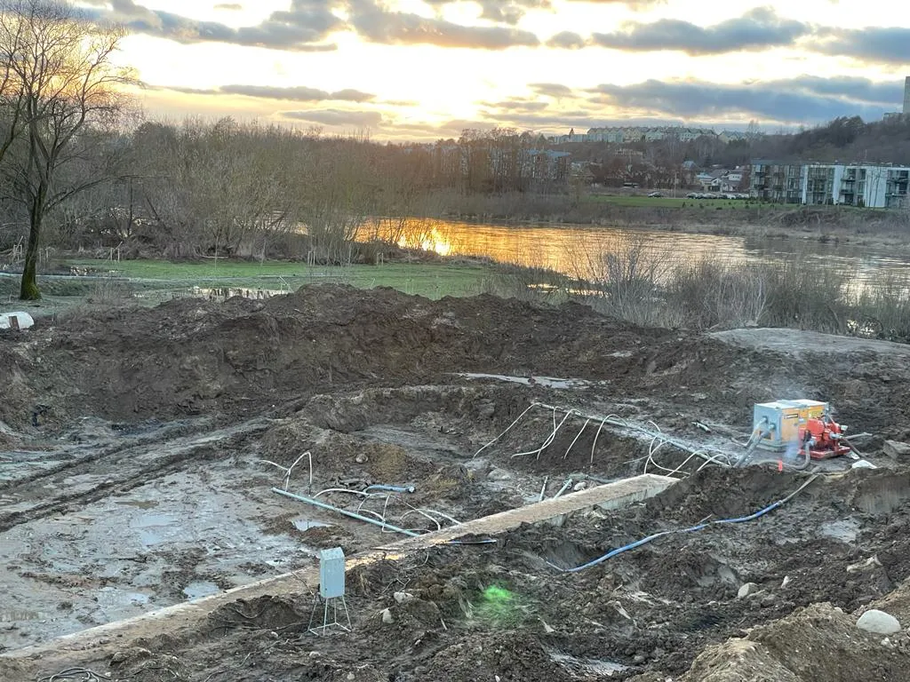 RENTA PUMPS šiame objekte pradėjo vykdyti gruntinio vandens nusausinimo darbus.