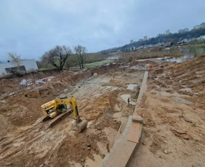 Vos 10 m nuo Neries upės kranto Kaune, Jonavos gatvėje vyksta paviršinių nuotėkų valymo įrenginių statybos.