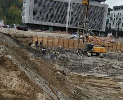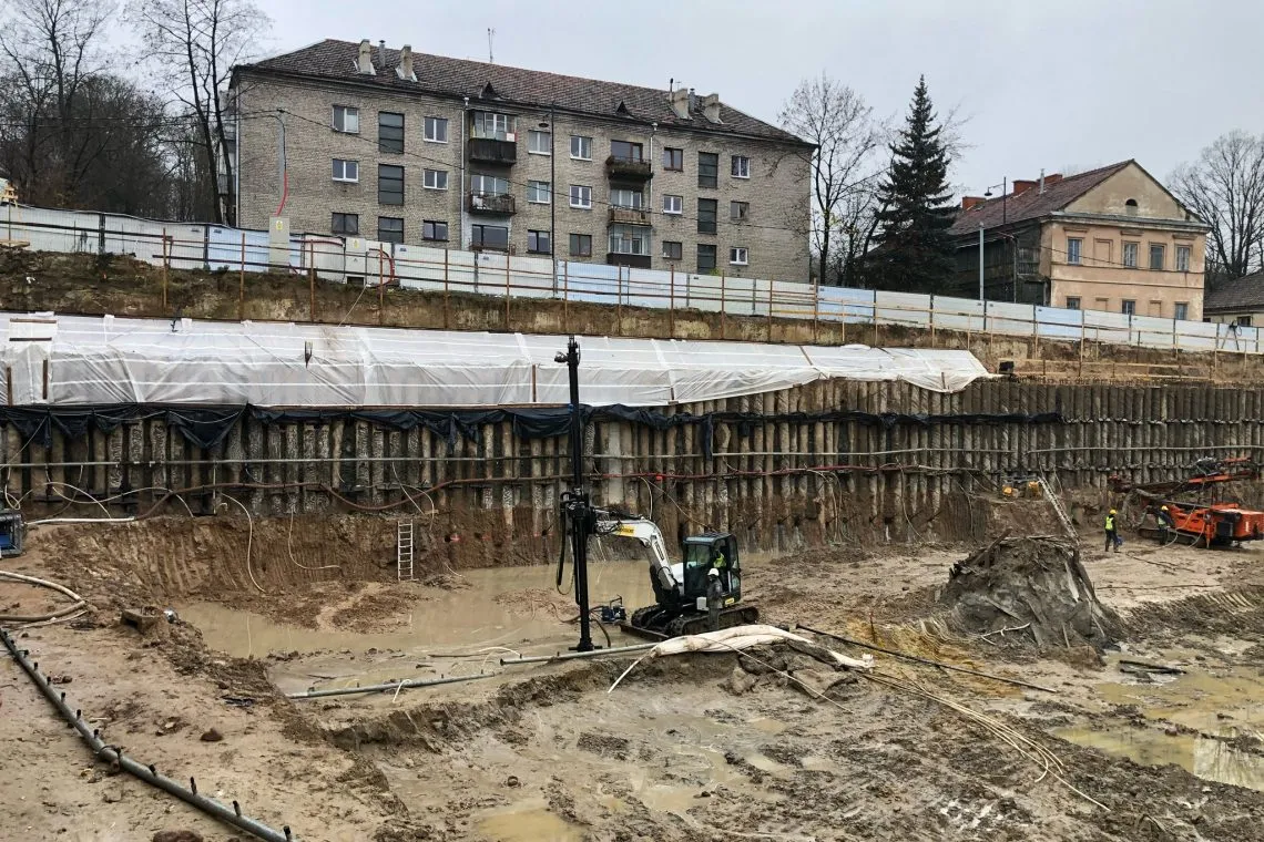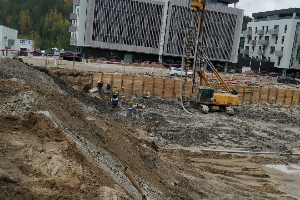 Vilnius, Aukštaičių g. 7 , Lietuva | 2020 09 - 2021 07 | 9656 m2. Gruntinio vandens lygio kontrolė, statant sparčiai besiplečiantį Paupio rajoną Aukštaičių gatvėje. Jau prestižiniu tapęs Paupio rajonas, žingsnis po žingsnio iš pramoninio rajono virsta į vieną geidžiamiausių gyvenamųjų rajonų Vilniuje. Sparčiai besiplečiantys nauji kvartalai su gyvenamaiseis pastatais, neatpažįstamai pakeitė šio rajono veidą. Nekilnojamo turto vystymo bendrovė “Darnu Group” prisideda prie Paupio rajono atgimimo ir stato jau trečiąjį iš septynių rajono kvartalų. Aukštaičių g. 7 jau įsibėgėjo 28 500 kvadratinių metrų komplekso statybos, su 380 vietų požeminiu parkingu. Didžioji šio komplekso dalis bus gyvenamosios paskirties. Projekto generalinis rangovas įmonė Naresta pasirinko RENTA PUMPS, kaip gruntinio vandens lygio kontrolės specialistus. RENTA PUMPS parinkti ir pritaikyti sprendimai pasitvirtino 100% ir gruntinio vandens lygis objekte buvo suvaldytas.